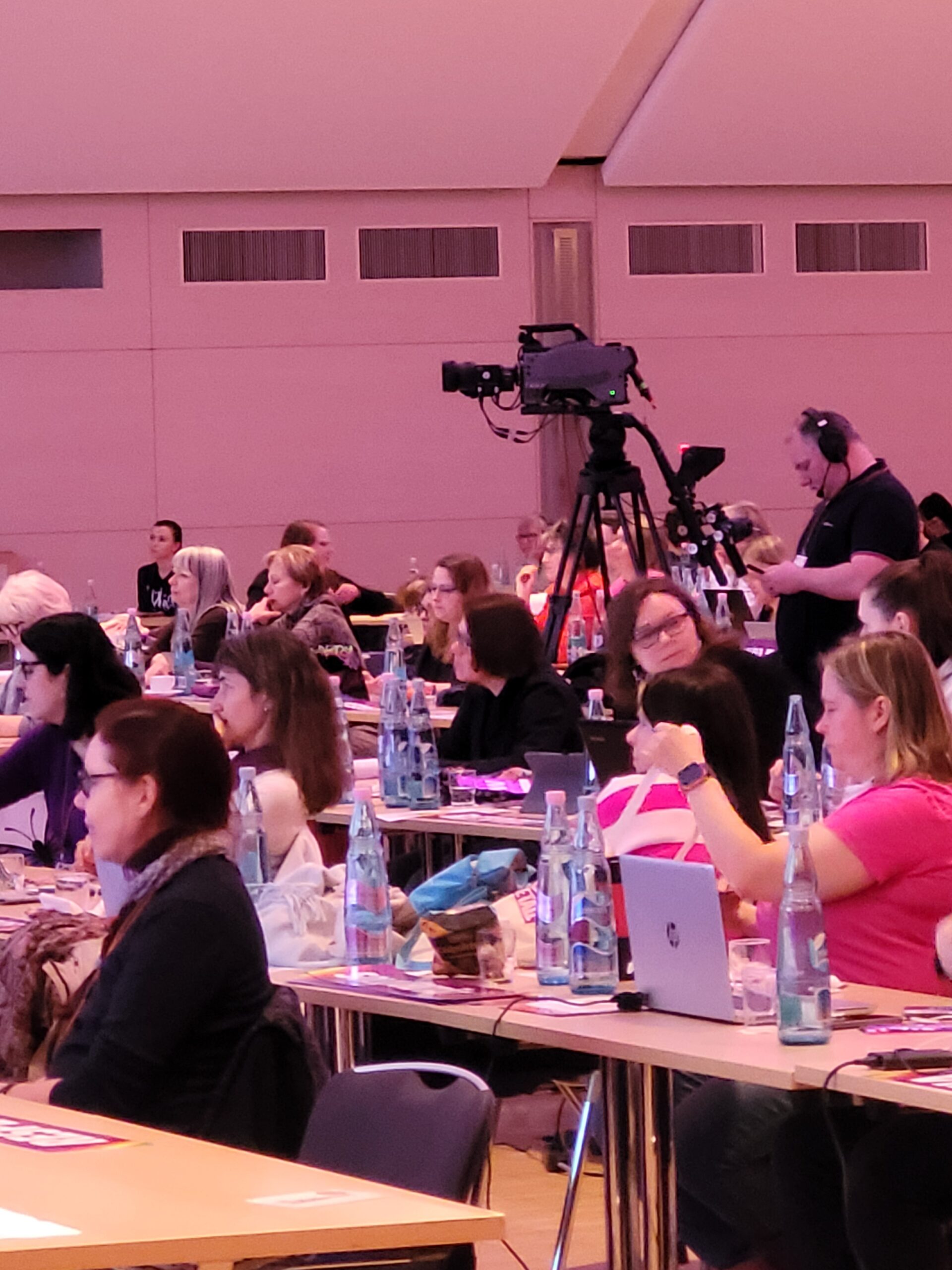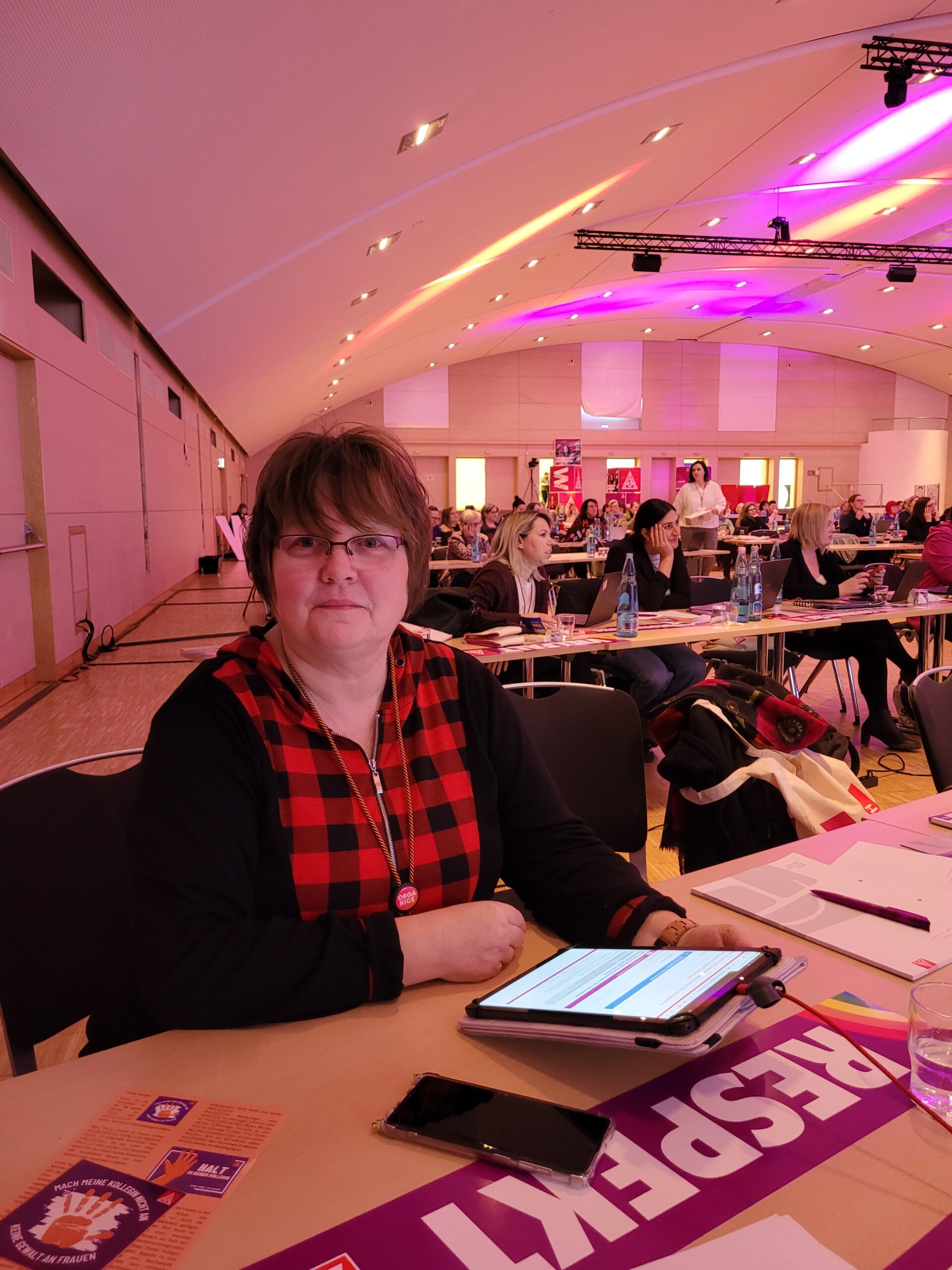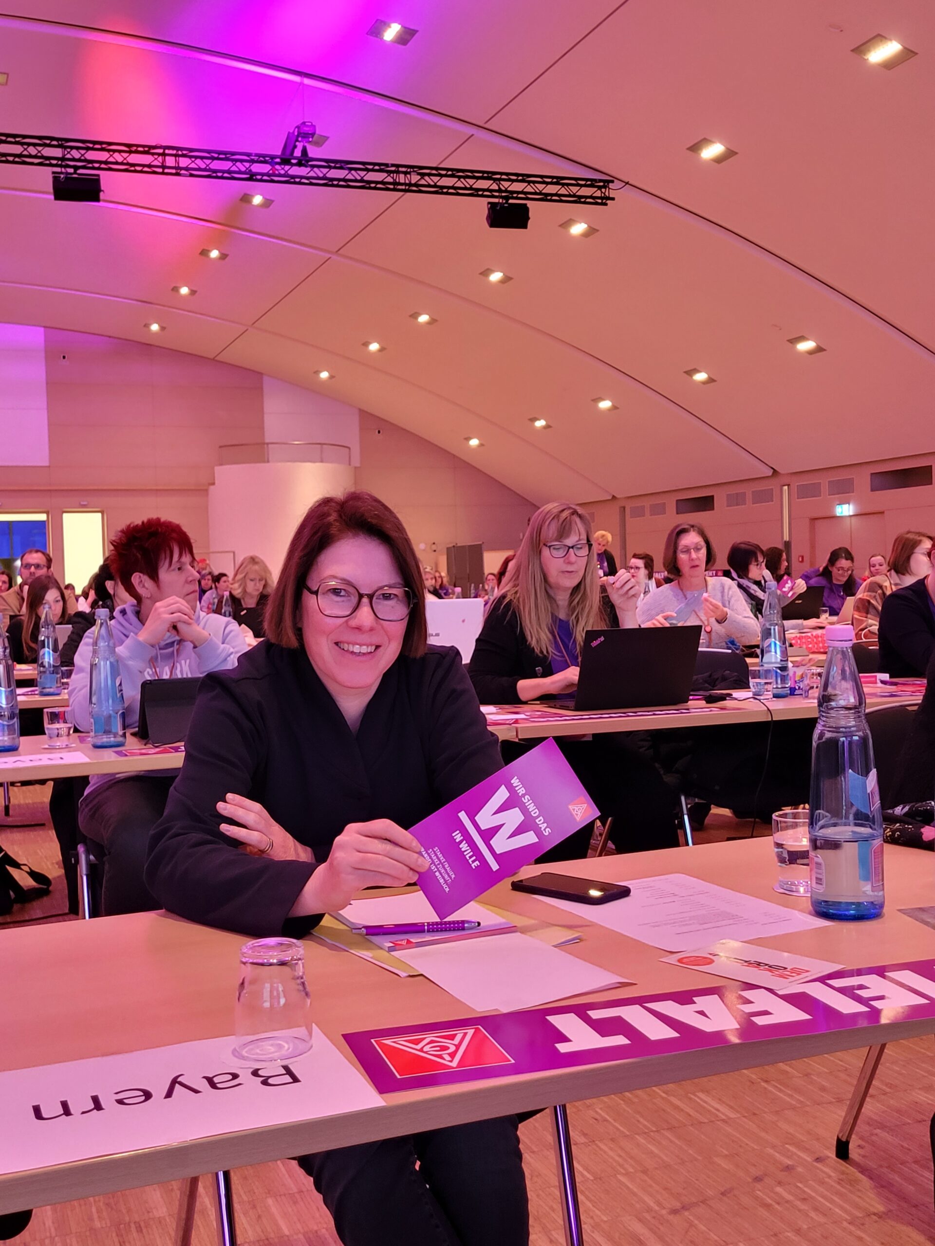 Die Konferenzblöcke wurden begleitet durch die tollen Musikeinlagen der Frauenband „Miss Foxy“, die für eine lockere Atmosphäre zwischen den Antragsblöcken und Podiumsdiskussionen mit den Vorstandsmitgliedern Jörg Hofmann, Jürgen Kerner, Christiane Benner, Ulrike Schulz sorgten. Es waren insgesamt 186 Delegierte und 74 Gast-Delegierte auf der Konferenz anwesend. Also Frauenpower pur!