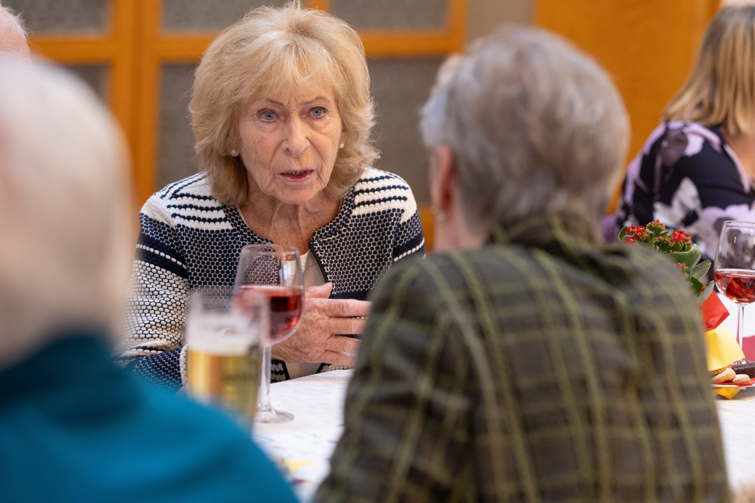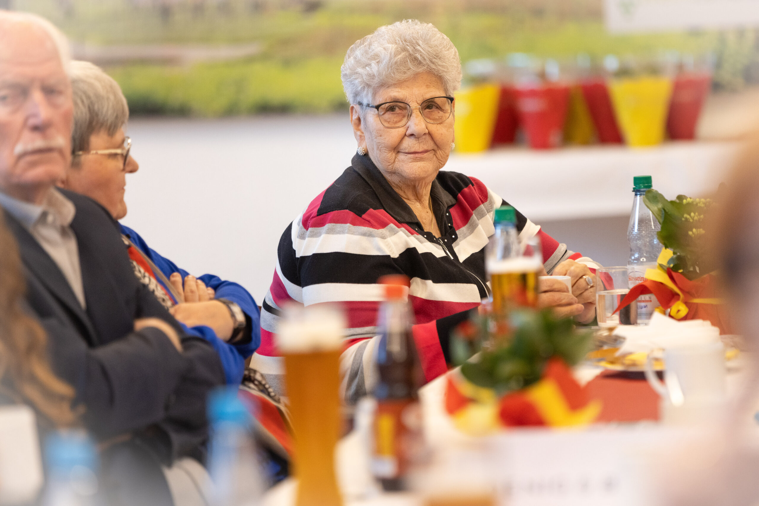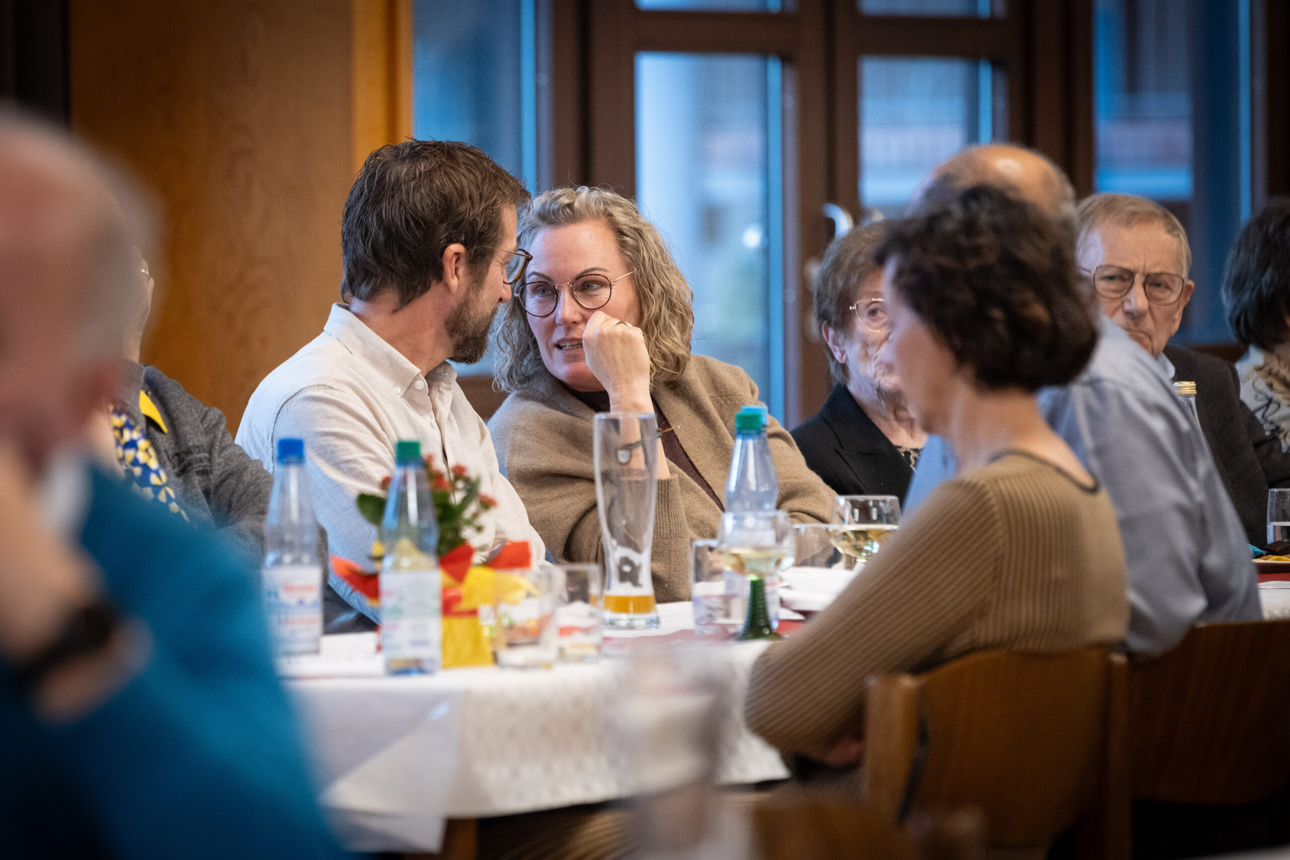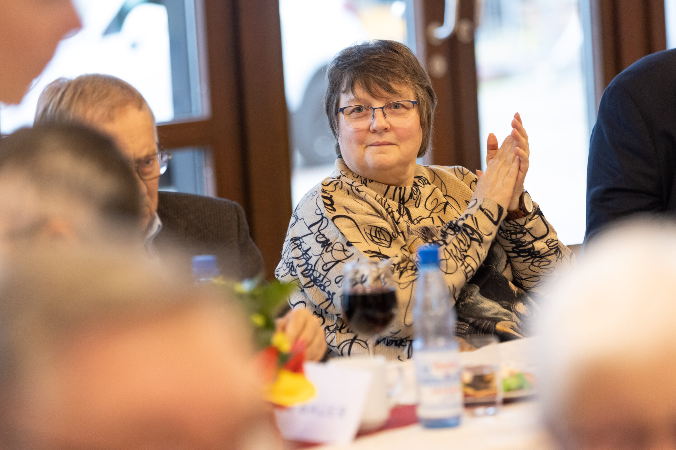 Ein besonders bewegender Moment war die Ehrung von Robert Zirkelbach, der 1945 als junger Mann beim Würzburger Druckmaschinenbauer Koenig & Bauer der IG Metall beitrat. Für seine 80-jährige Mitgliedschaft wurde er als erster Jubilar in der Geschichte der IG Metall Würzburg mit dem Ehrenwimpel des Ortsvorstands ausgezeichnet. Als Norbert Zirnsak, Erster Bevollmächtigter der IG Metall Würzburg, die Auszeichnung überreichte, erhoben sich alle Gäste zu stehendem Beifall.