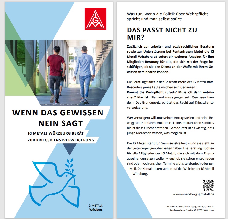 IG Metall Würzburg Informationsflyer zur Kriegsdienstverweigerung